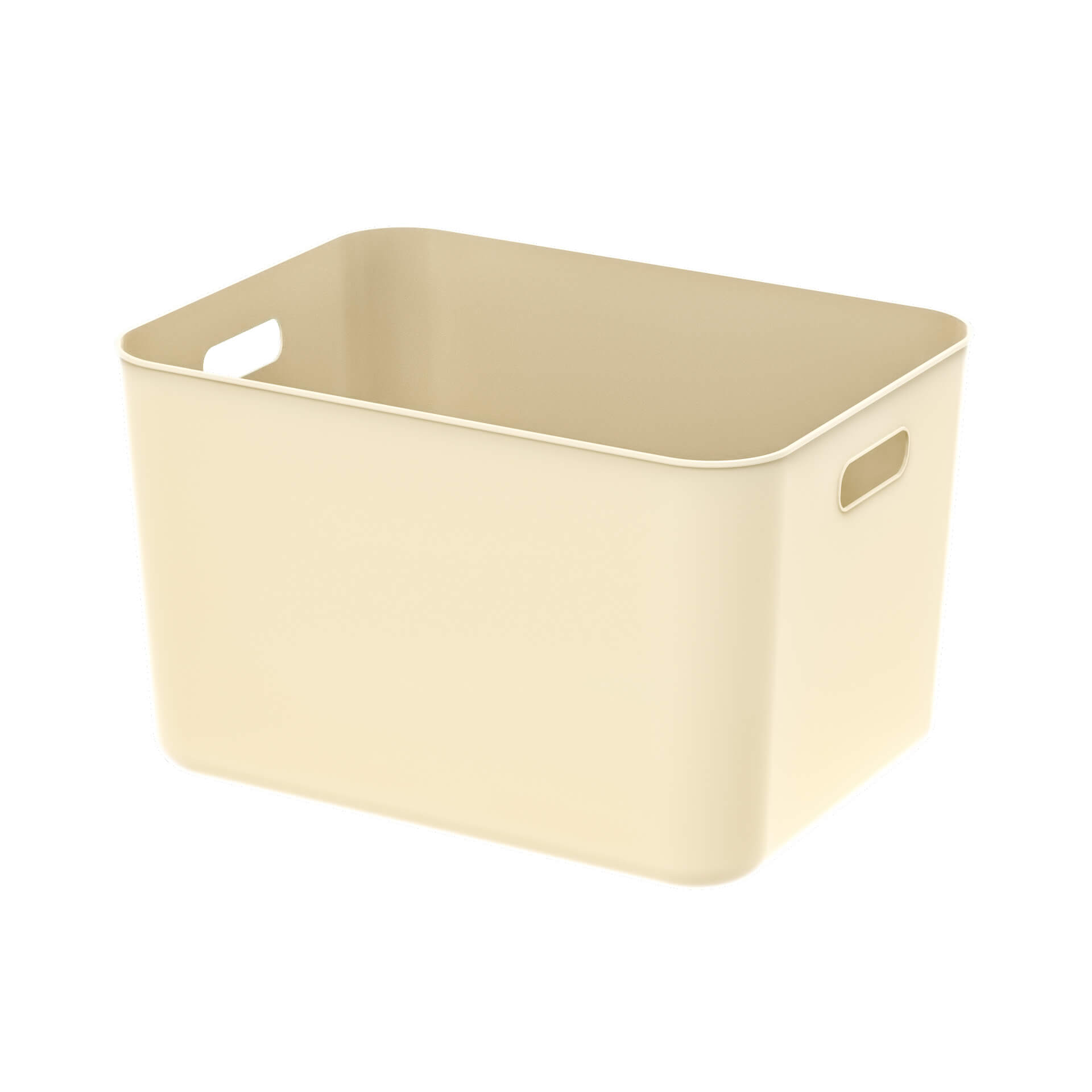 Ящик пластиковый вкладываемый 410х305х245 мм, бежевый, с коричневой крышкой и открытыми ручками – практичное и удобное решение для хранения