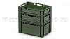 Зелёный ящик серии Е-2 используется как ящик для хранения и контейнер для хранения в холодильных и морозильных зонах, а также как ящик для склада и складской ящик при обработке товарных потоков. Он удобен как ящик для транспортировки за счёт устойчивой формы и возможности штабелирования.